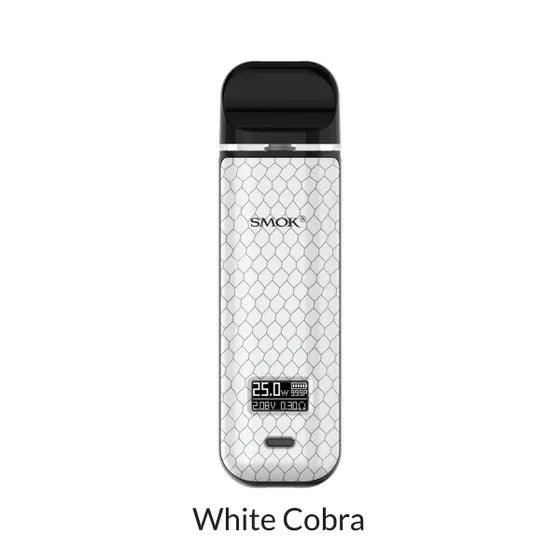 The SMOK Novo X has a slender, curved shell with colorful front and rear inlay panels similar to the Novo and Novo 2 open pod kits. However, the frame is somewhat wider to accommodate a single control button and 0.49" OLED screen that let you turn the device on and off and change settings. When activated by the draw activated mechanism, the 800mAh internal cell can give up to 25W of power to atomizers in the resistance range of 0.4 - 3.0 with variable wattage support in 1W increments when charged through the bottom mounted micro USB connector.